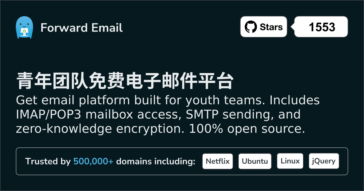 Get email platform built for youth teams. Includes IMAP/POP3 mailbox access, SMTP sending, and zero-knowledge encryption. 100% open source.
